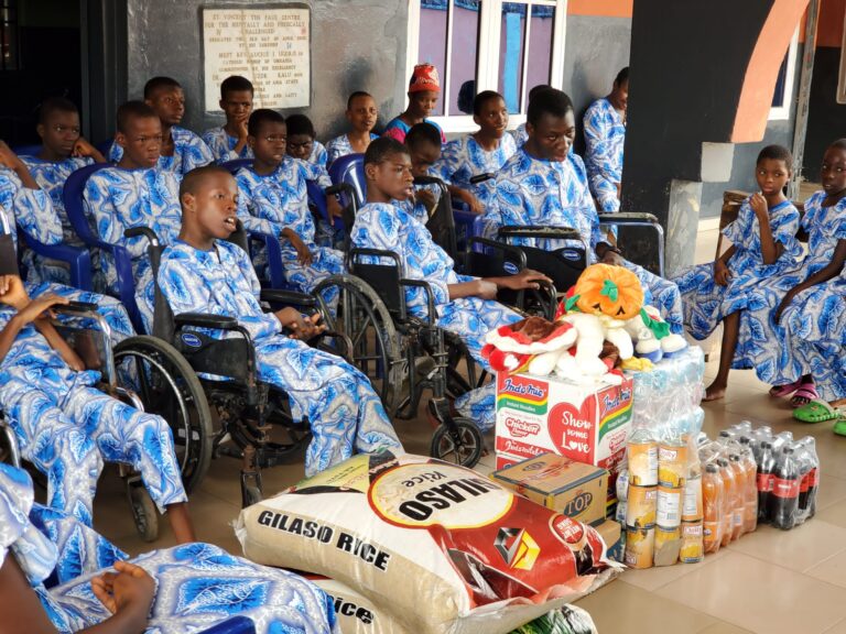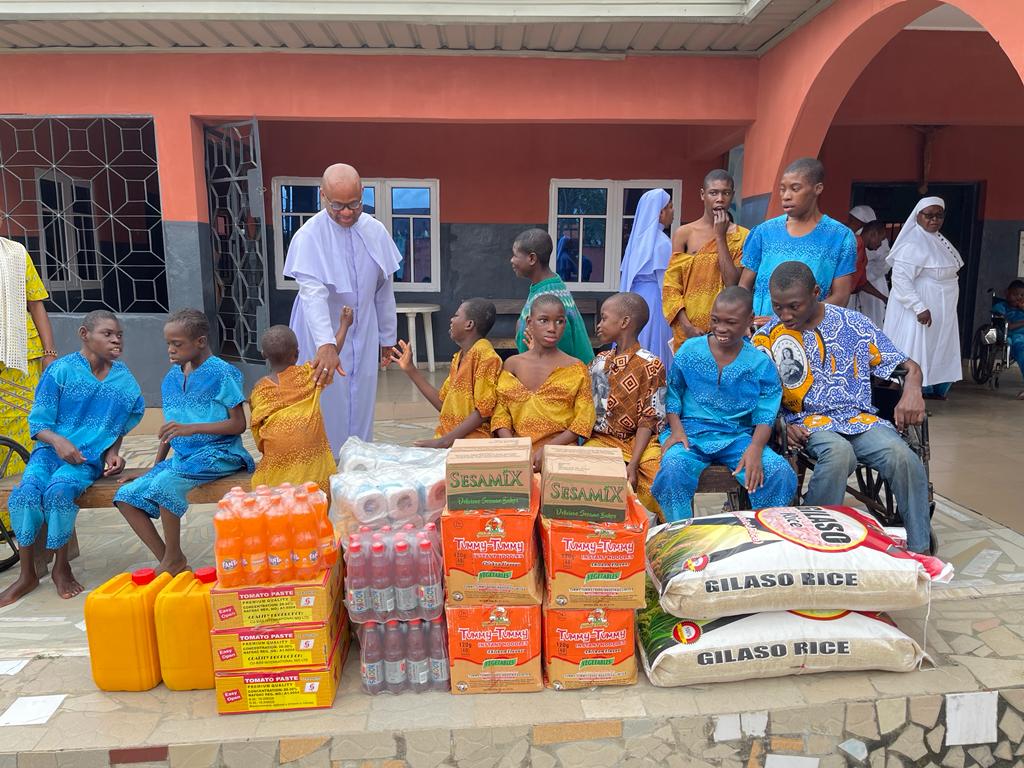 Mediatrix Reach Out Trust (MeRoT) pays visits and donates gift items (such as food items, drinks, beverages, playing toys, clothing materials, toiletries, education materials, money, religious articles, etc.) to Compassionate Homes of Motherless/Abandoned Children and Centers for the Physically/Mentally Challenged Children in Nigeria.